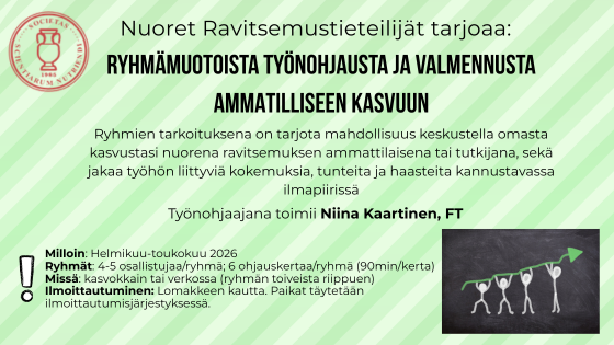 Työnohjausta ja valmennusta ammatillisen kasvun tueksi Tervetuloa osallistumaan nuorille ravitsemustieteen ammattilaisille ja tutkijoille tarkoitettuun työnohjaus- ja valmennusprosessiin - ilmaiseksi! Tämän ryhmätyönohjausprosessin tavoitteena on tarjota sinulle foorumi, jossa voit pysähtyä keskustelemaan omasta kasvustasi nuorena ravitsemuksen ammattilaisena […]